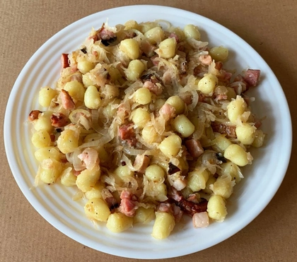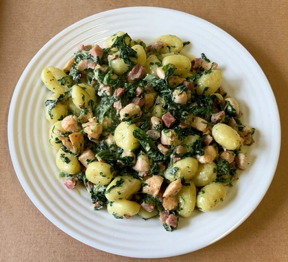 smetana, mozzarella, slanina, špenát, česnek, cibule
