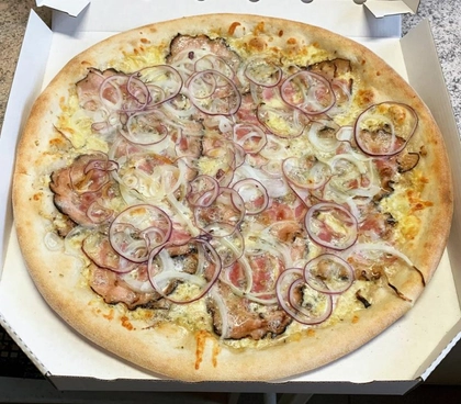 tomato, mozzarella, šunka, cibule, smetana